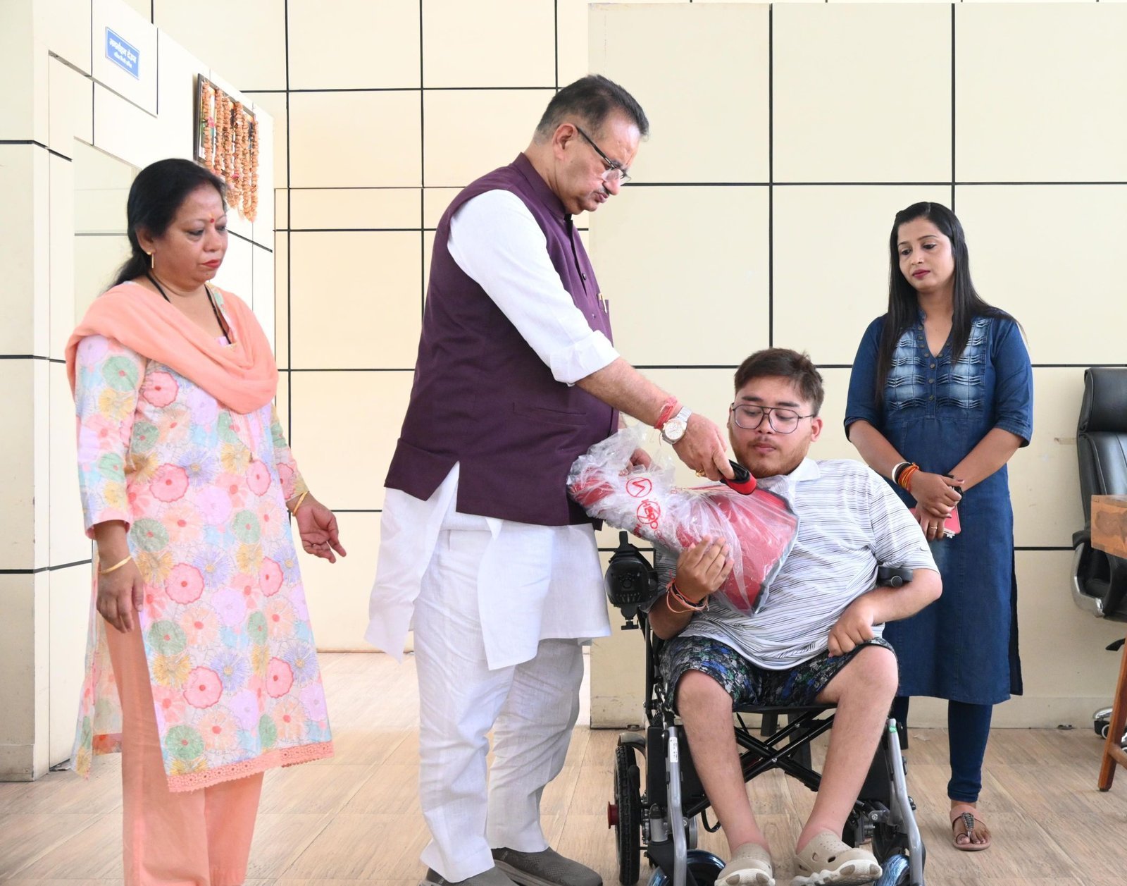 कैबिनेट मंत्री गणेश जोशी ने दिव्यांग युवक को भेंट की इलेक्ट्रॉनिक व्हीलचेयर, कहा – जरूरतमंदों की सेवा है मेरी प्रतिबद्धता