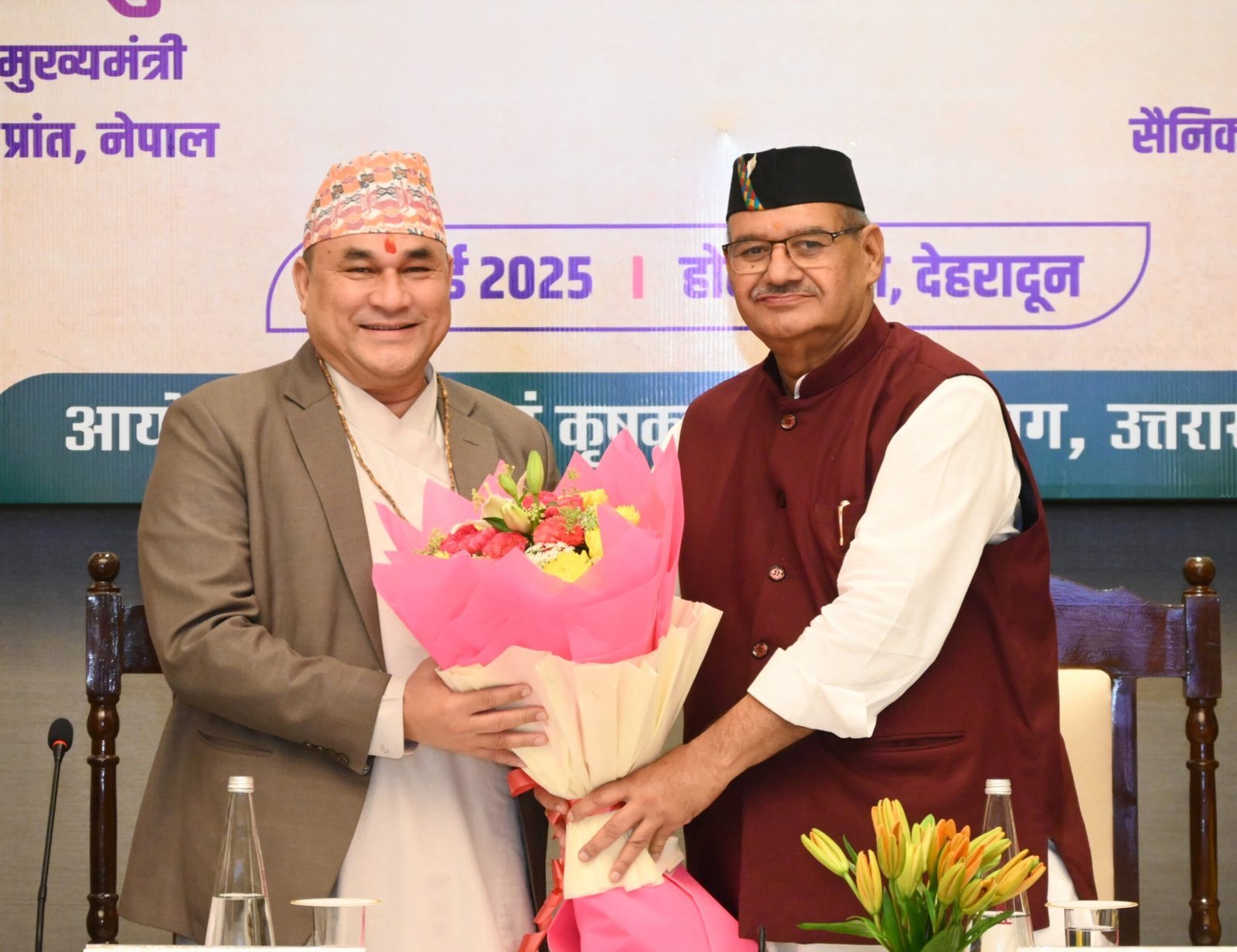 भारत सरकार के आमंत्रण पर उत्तराखण्ड पहुंचे नेपाल राष्ट्र के सुदूरपश्चिम प्रांत के मुख्यमंत्री कमल बहादुर शाह ने भारत और नेपाल के बीच गहरे सामाजिक, सांस्कृतिक और भौगोलिक संबंधों को रेखांकित करते हुए कहा कि दोनों देशों की जीवनशैली, खानपान, पहनावा और धार्मिक आस्थाएं एक-दूसरे से बहुत मिलती-जुलती हैं। विशेष रूप से उत्तराखंड राज्य, जो नेपाल की सीमा से लगा हुआ है, यहां के लोगों का नेपाल के लोगों के साथ सदियों से सामाजिक और सांस्कृतिक मेलजोल रहा है। सीमावर्ती क्षेत्रों में कई परिवारों के आपसी संबंध भी हैं, जिससे दोनों देशों के नागरिकों के बीच एक पारिवारिक भावना का अनुभव होता है। उन्होंने कहा कि दोनों देशों के बीच की यह मित्रता केवल कूटनीतिक स्तर तक सीमित नहीं, बल्कि जन-जन के दिलों से जुड़ी हुई है। पड़ोसी मित्र राष्ट्र भारत ने बीते वर्षों में जिस तीव्रता से विकास की नई ऊंचाइयों को छुआ है, वह अत्यंत प्रेरणादायक है। उन्होंने कहा कि उत्तराखंड राज्य में प्राकृतिक और ऑर्गेनिक खेती के क्षेत्र में जो प्रयास किए जा रहे हैं, वे अत्यंत सराहनीय हैं। ये प्रयास न केवल पर्यावरण संरक्षण की दिशा में कारगर हैं, बल्कि किसानों की आय को भी बढ़ावा देते हैं। उन्होंने प्रधानमंत्री नरेन्द्र मोदी का विशेष रूप आभार जताते हुए कहा कि जिनके नेतृत्व में भारत ने न केवल अपने देश के विकास को गति दी है, बल्कि पड़ोसी देशों के साथ सहयोग और सद्भाव की भावना को भी प्रोत्साहित किया है। उन्होंने कहा कि भारत-नेपाल की यह अटूट मित्रता हमारी साझा विरासत है, जिसे हम आने वाले समय में और भी मजबूत करेंगे। पंचेश्वर बाध निर्माण तथा धारचूला में पुल निर्माण जैसी अन्तर्राष्ट्रीय मुद्दों पर भी मुख्यमंत्री ने अपनी बात रखी। मुख्यमंत्री ने उत्तराखण्ड के कृषि मंत्री का धन्यवाद किया और उन्हें अपने प्रांत आने के लिए आमंत्रण दिया।
