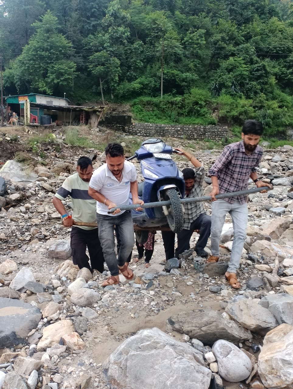 रास्ता टूटने से ग्रामीणों को भारी परेशानी का सामना करना पड़ रहा है। इस वीडियो में देखा जा सकता है कि गांव के लोग अपनी स्कूटी को कंधे पर उठाकर, टूटे हुए पुल के मलबे से होकर निकलने को मजबूर हैं। एक समूह बनाकर लोग एक-दूसरे की मदद से स्कूटी को दूसरी तरफ पहुंचा रहे हैं। ऐसा लग रहा है कि उनके पास काम पर जाने का कोई दूसरा रास्ता नहीं बचा है।